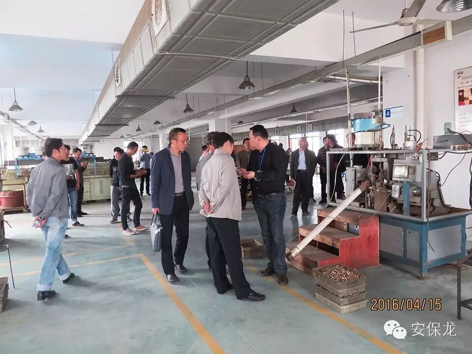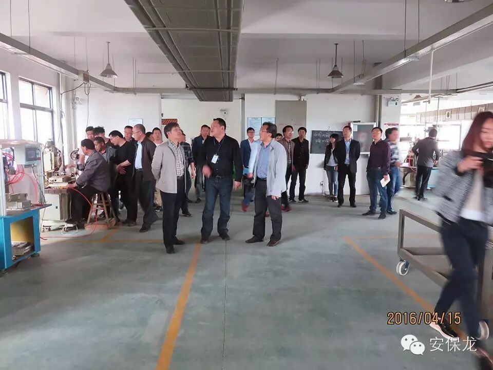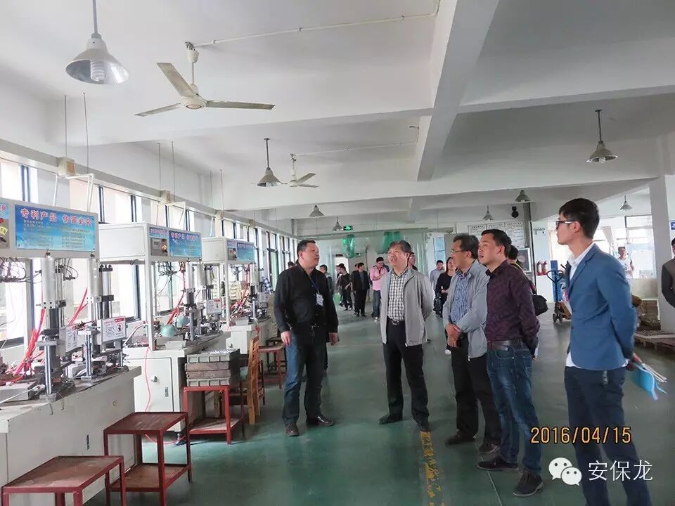 县领导们首先来到安保龙公共办公区域,了解了公司的发展过程、管理制度以及今后的发展规划,为此指出了一些建议和意见,希望公司在日后发展中能得到进一步的提升。接着,在郑总的带领下,又来到了我司第一生产线上进行考察,宽敞整齐的车间和先进的自动生产设备,都让县考察团领导们叹为观止。郑总向领导们讲解了整个生产线的制作和装配流程,对于整个制作的过程考察团给予了极大的赞许。